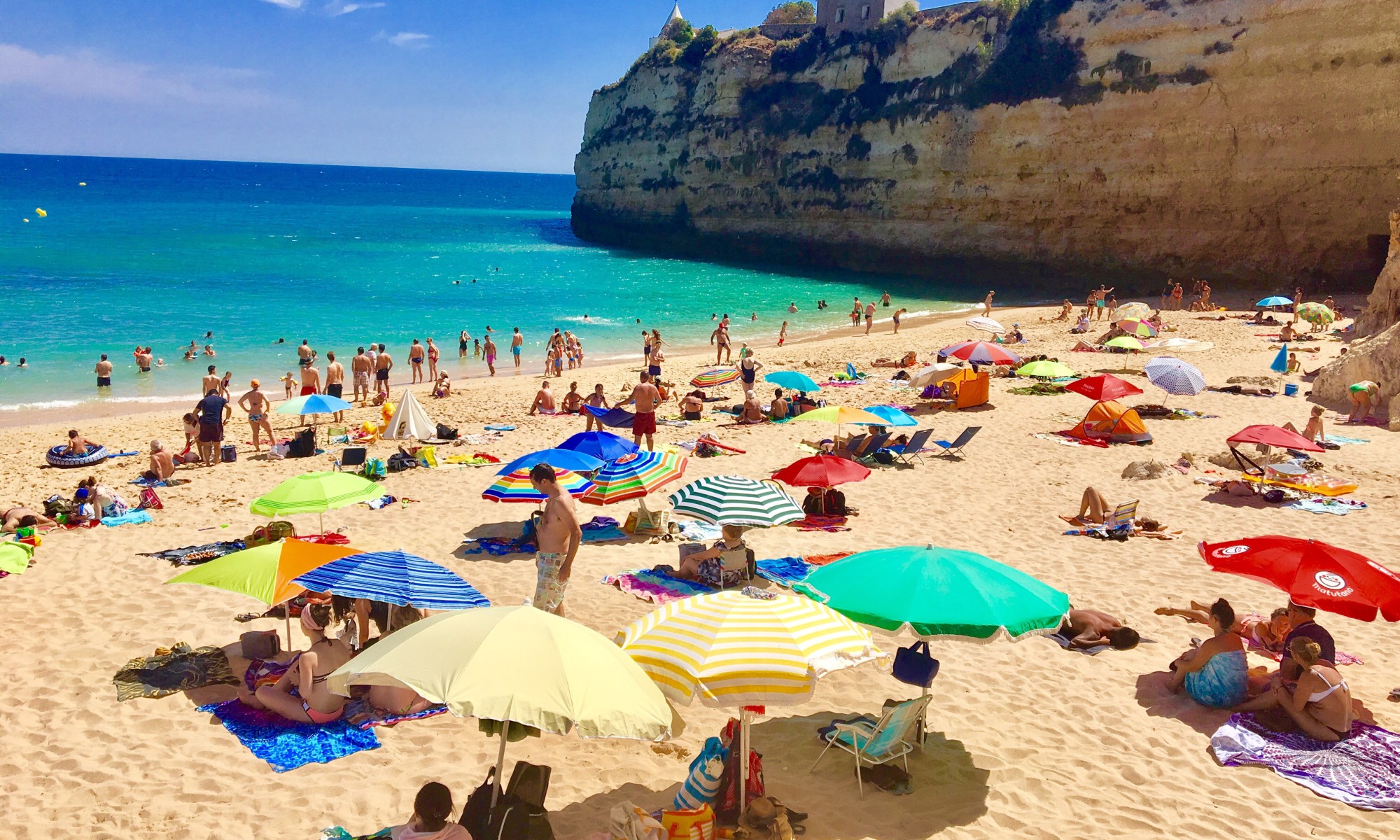Later we moved to Praia Da Marinha which is one of the most beautiful beaches of Portugal. A lot of people just chill on the beach taking sun bath whereas some prefer getting in the water. The waves were quite high late afternoon and though the weather being pleasant the water was quite cold to take a dip in. So, we decided to relax and admire the beautiful cliffs around.