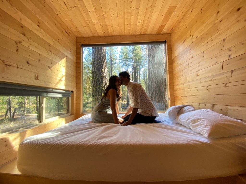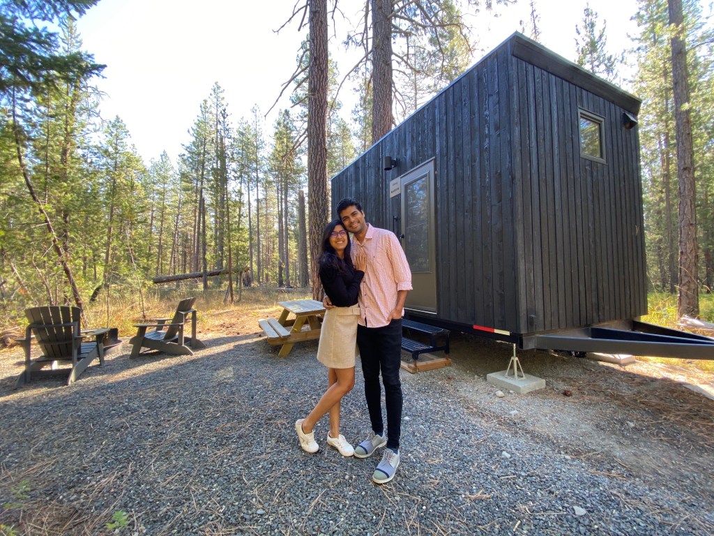 When it comes to escaping the city for a restorative stay in nature, few retreats offer the convenience and charm found in tiny cabins of getaway. And after a hectic couple of weeks at work, this was a perfect getaway we were looking for close to our house. Both Yesha and I hadn’t explored much of the Mount Adams area so we were very excited to check that out. We were lucky to get hosted by Getaway team who created this experience to give people time, space, and permission to be off the city & internet life. Their tiny cabins in nature provide a break from the city, technology, and work, so that you can recharge and reconnect to who and what matters the most. And when mixed with the wilderness of Mount Adams, it was a perfect time to hydrate our souls.
