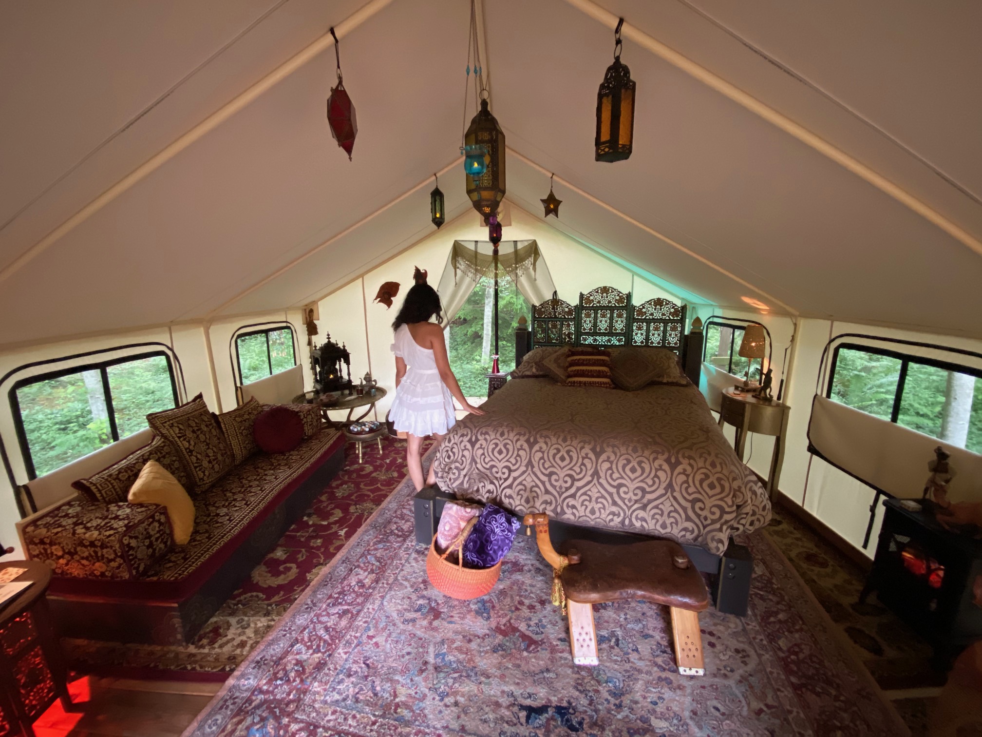 Have a few days off, or even longer, and wondering how to spend the free time? Consider going glamping in Whidbey Island, Washington and explore some pretty amazing outdoor locations nearby. We went here this year to celebrate Yesha’s birthday & we just can’t tell you how much we loved it here. Just an hour away from Seattle, Whidbey island feels close yet far away to escape from the city life. The glamping site WT at the Whidbey itself has two different tents, 1 styled like a Moroccan tent, the other inspired from a world traveler. Both the tents look into the woods and similar views can be seen from the bar at the site, which was our favorite.
