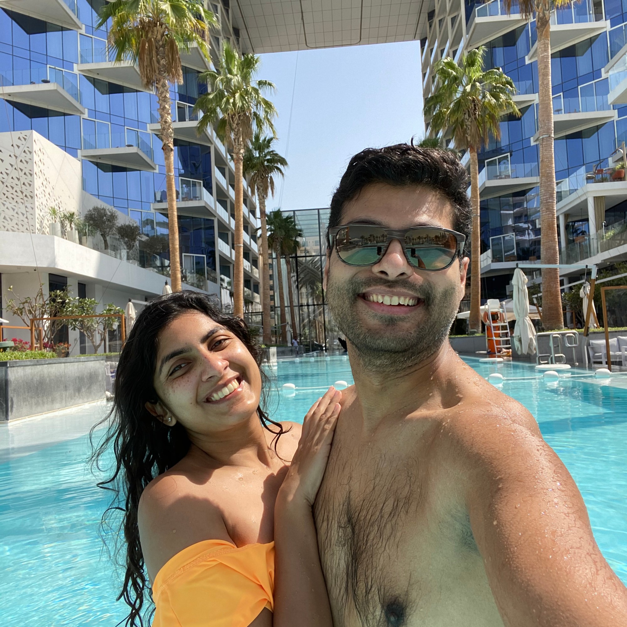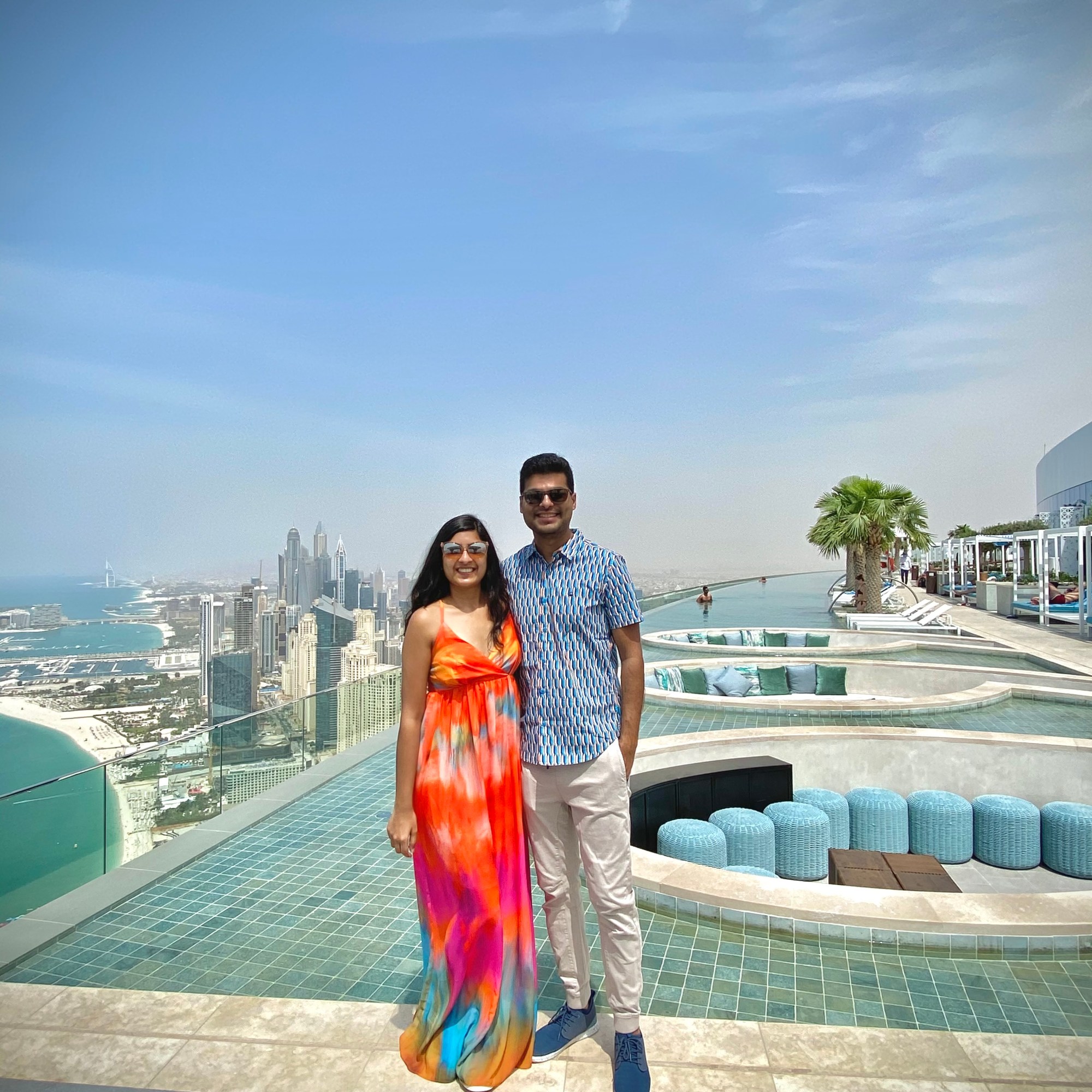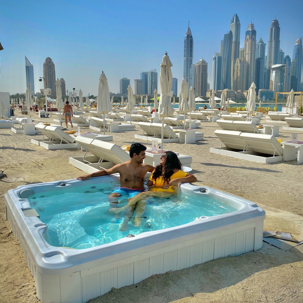 Both Shobhit and I have been to Dubai before and have done all the touristy stuff like the desert Safari, visiting the top of Burj Khalifa, visiting the theme/water parks etc. In this trip, all we wanted to do was chill and enjoy in the sun and hotels. We were literally living by the edge and each day was on the fly. Also, especially because we were both working from home. For Shobhit he had to work until late nights but for me it’s all flexible- perks of having your own travel agency 😉