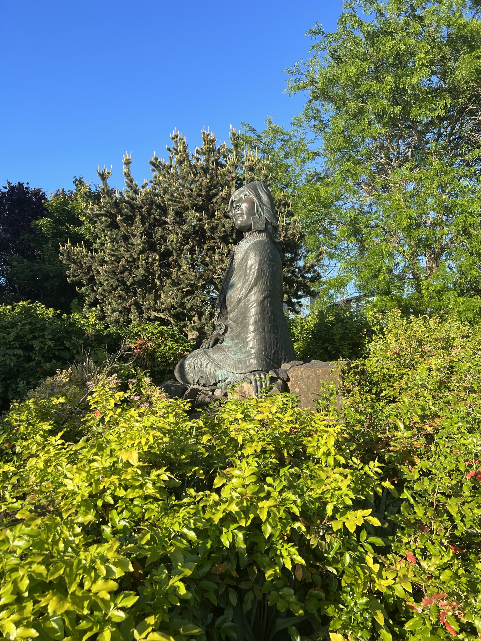 We then decided to walk he Waterfront Renaissance Trail, which is along the Columbia River, connecting to the Vancouver Land Bridge—a 40-foot wide earth-covered pedestrian bridge that arcs over State Route 14, reconnecting historic Fort Vancouver with the Columbia River. The Land Bridge was designed by architect Johnpaul Jones with consultation from Maya Lin, as part of the Confluence Project, which aims to commemorate the Lewis and Clark Expedition and celebrate the Native American cultures of the Columbia River Basin. As you walk along the Land Bridge, you can learn about the site’s indigenous plants from the ethnobotanical walkway, which features a series of interpretive panels. You can also enjoy the views of the river and the surrounding mountains from the three overlooks, which are adorned with spirit baskets by Native American artist Lillian Pitt. The words for River, Land, and People appear in nine native languages on stainless steel panels.